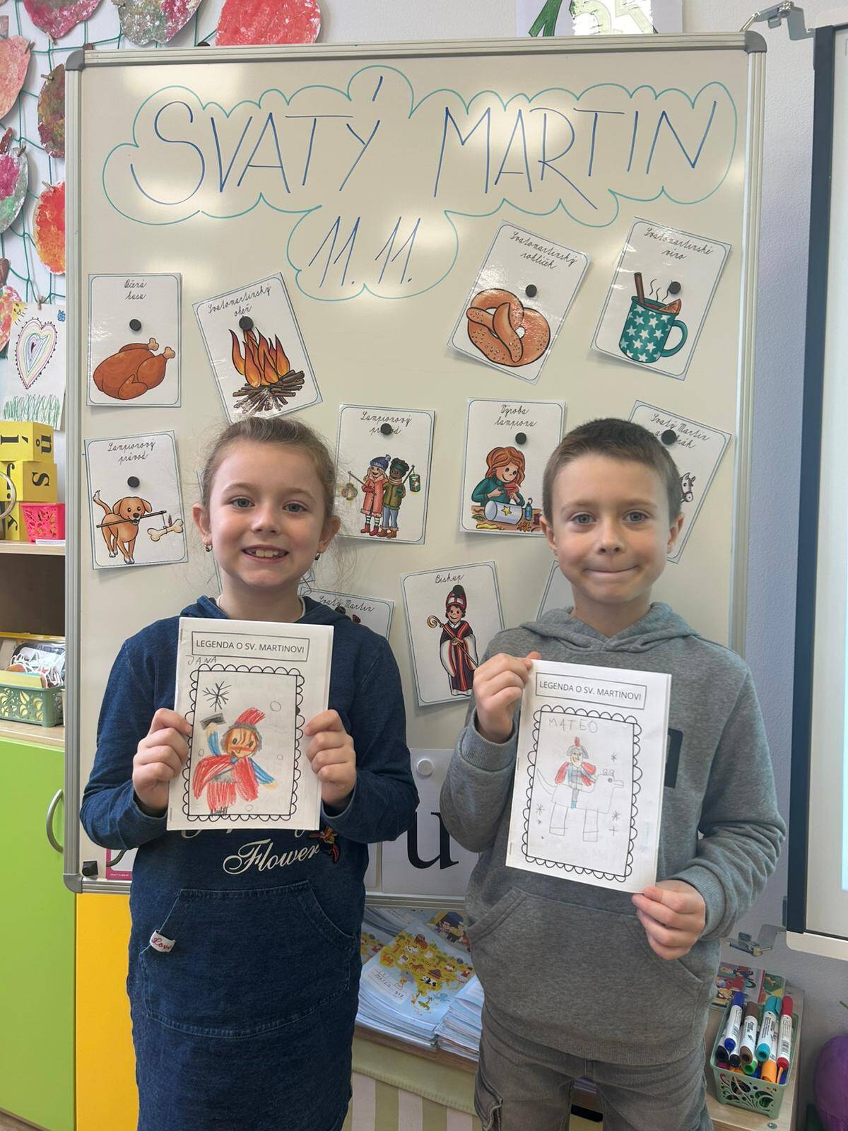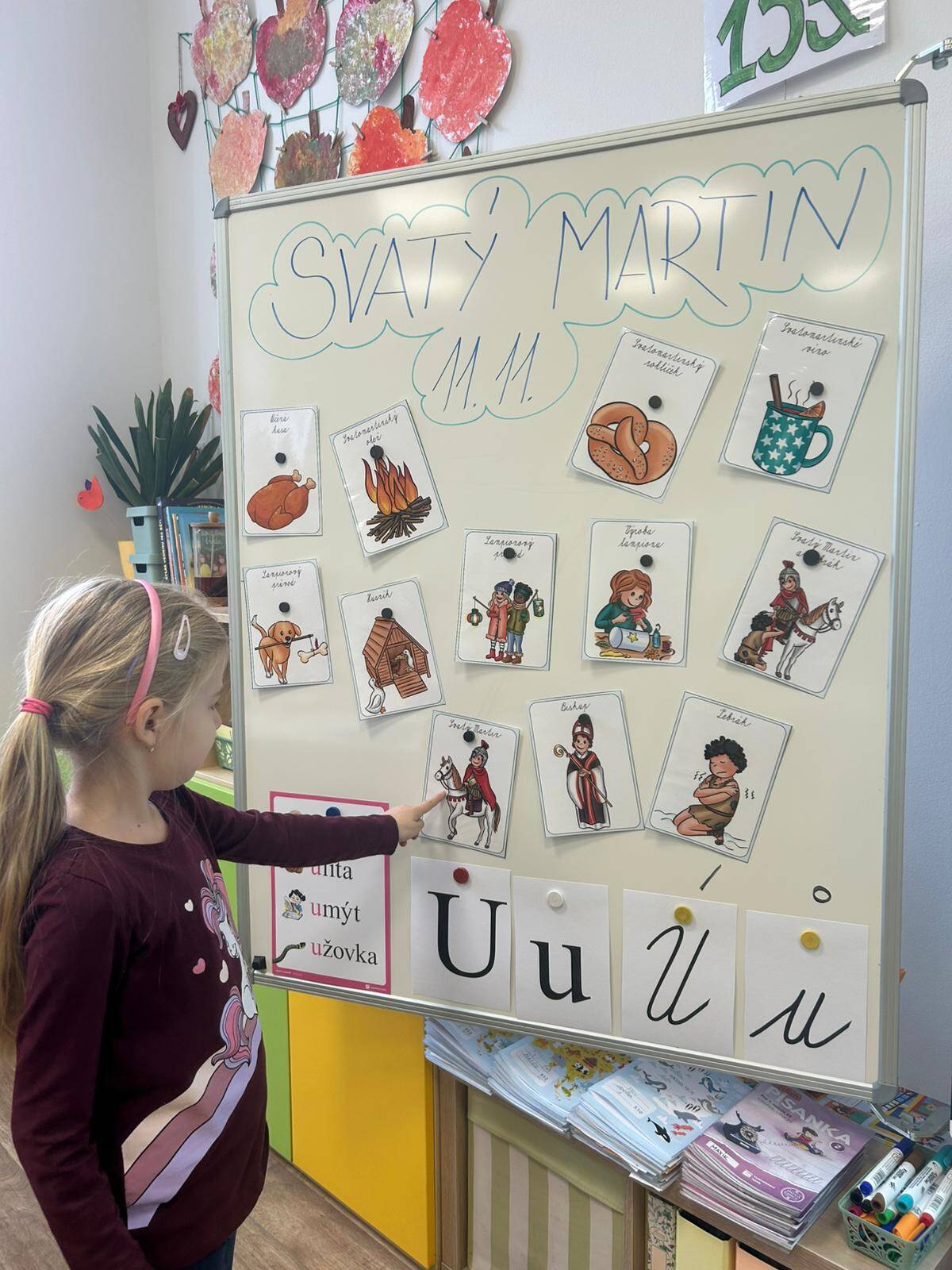 V první třídě jsme si povídali o svatém Martinovi, kterého si připomínáme 11. listopadu. Svatý Martin nás provázel napříč všemi vyučovacími předměty po celý den. Děti se mimo jiné seznámily s legendou o vojákovi Martinovi, který se v chladném dni slitoval nad žebrákem a rozdělil se s ním o svůj plášť. Povídali jsme si o dobrých skutcích a připomněli si, že stejně jako sv. Martin i my bychom měli pomáhat druhým, jelikož pomoc druhým je někdy ten největší dar, který můžeme dát.