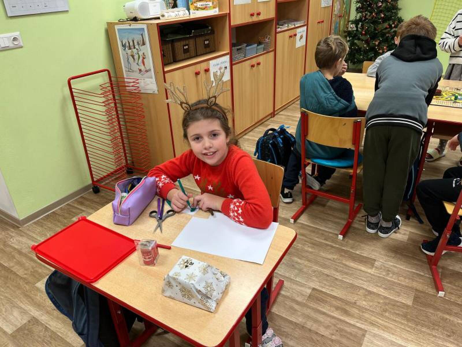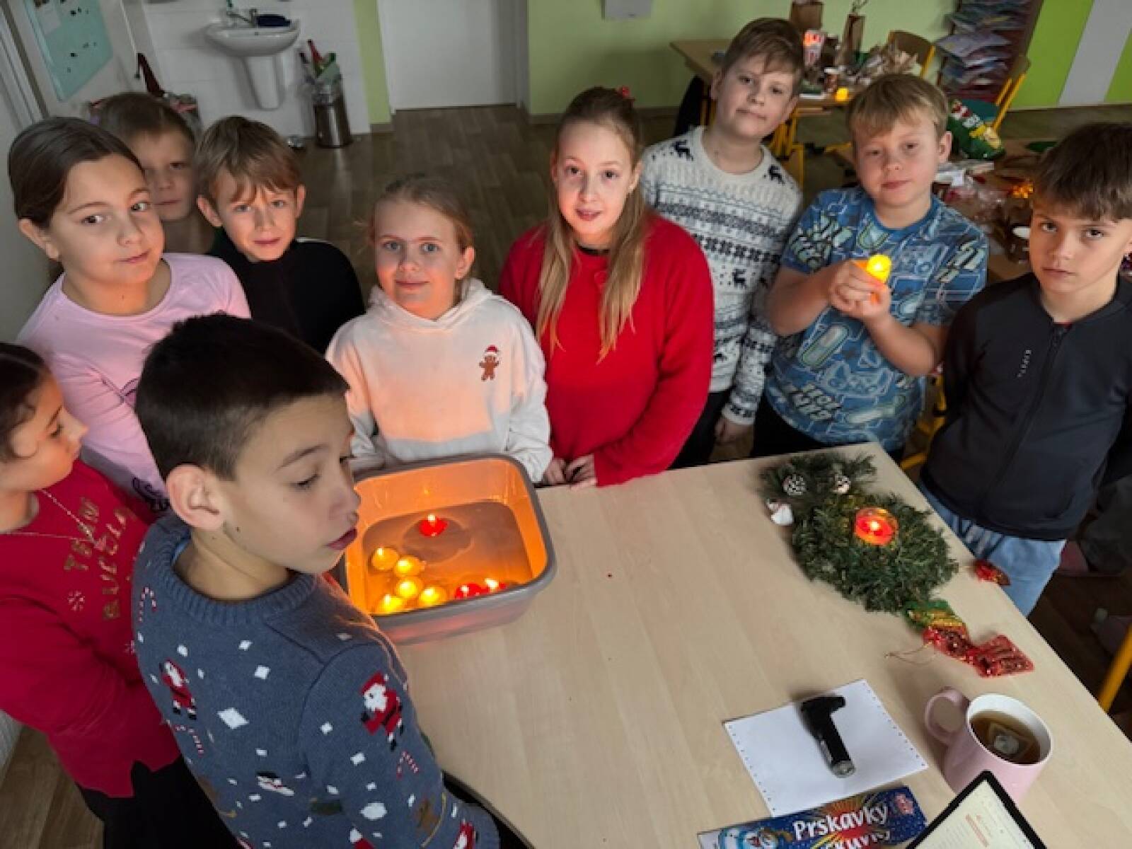 Dnes se u nás ve škole nesl celý den ve vánočním duchu. Všechny třídy měly se svými paními učitelkami vánoční besídky. Ve třídách panovala veselá atmosféra, která k Vánocům neodmyslitelně patří. V některých třídách se linula vůně čerstvého popcornu, jinde zase vonělo vánoční cukroví. Některé děti si vyzkoušely tradiční vánoční zvyky - například rozkrajování jablíčka, aby zjistily, jestli se uvnitř objeví vánoční hvězdička pro štěstí.