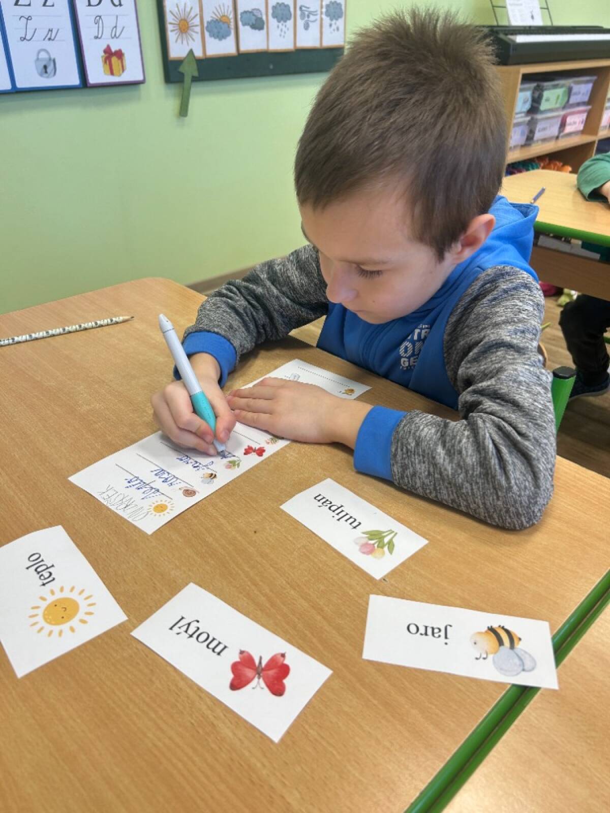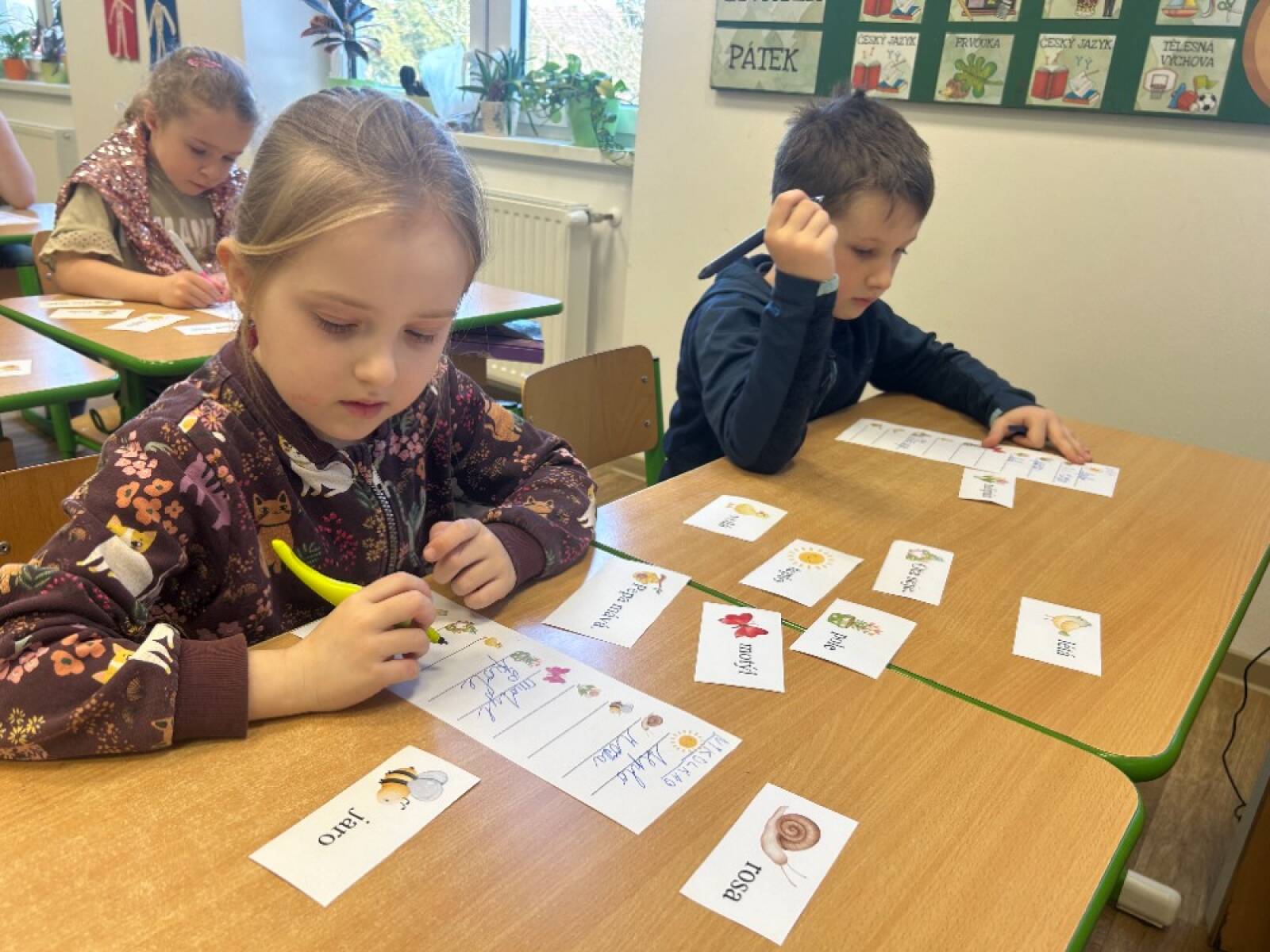 Povídali jsme si o tom, jaké první známky jara už kolem sebe pozorujeme, co se mění v přírodě a na co se nejvíce těšíme. V hodinách českého jazyka jsme pracovali se slovy s jarní tematikou, přepisovali jarní slovíčka a procvičovali správné tvary písmen.
