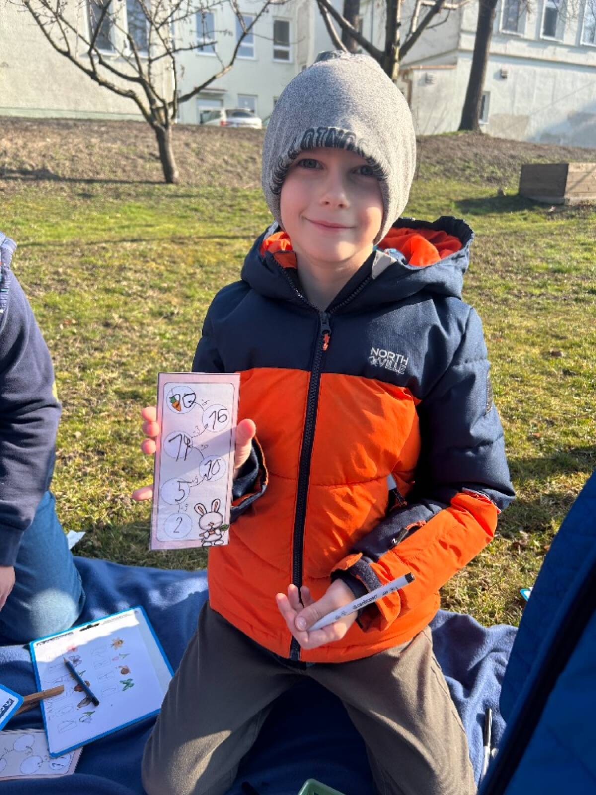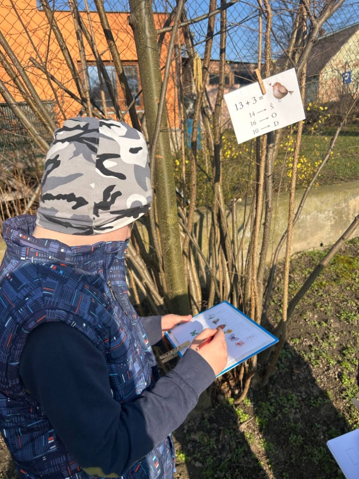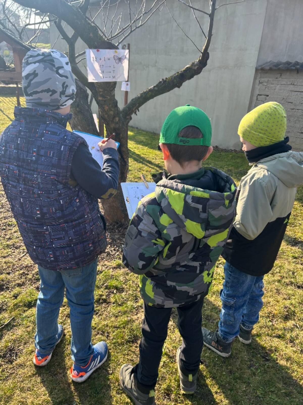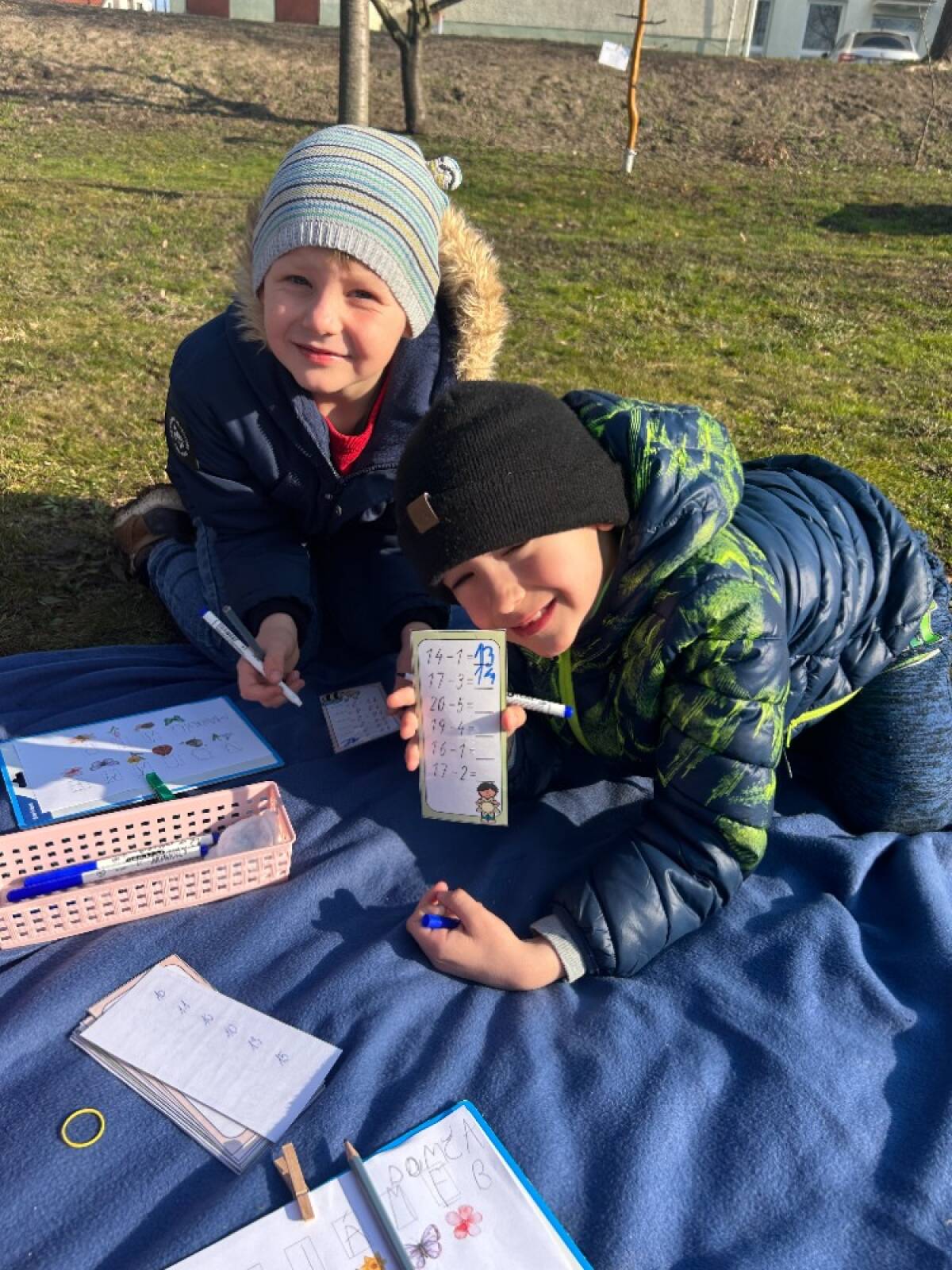 Slunečné počasí jsme využili při výuce matematiky, kterou jsme si užili na čerstvém vzduchu.