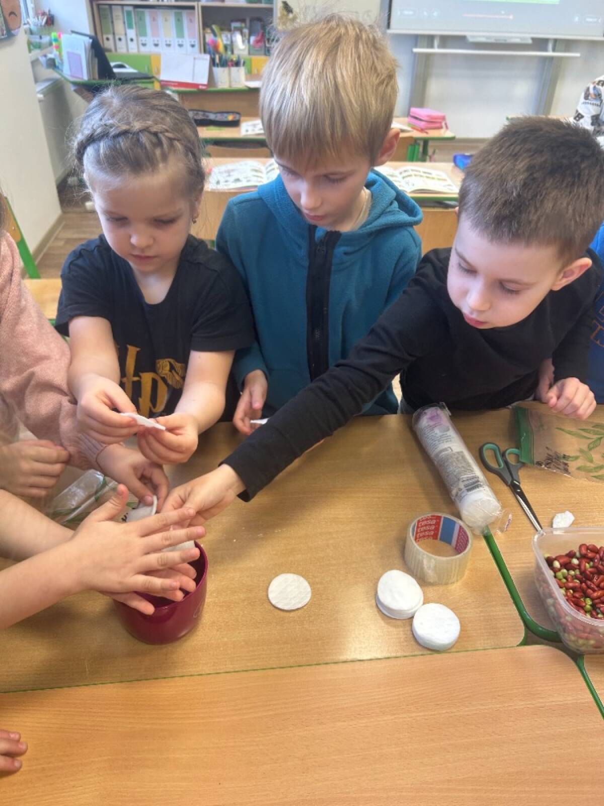 V hodině prvouky jsme si s dětmi vyzkoušeli jednoduchý pokus - klíčení semen fazole a hrachu. Děti si vyzkoušely roli malých vědců a několik dní pozorovaly, jak se ze semínka postupně stává rostlina.