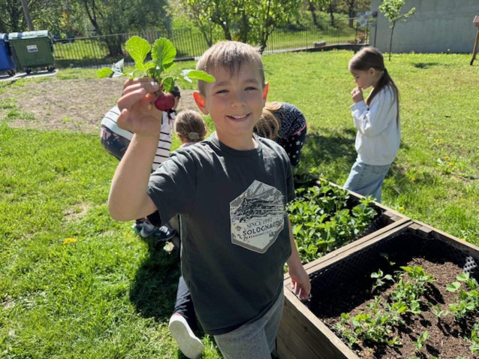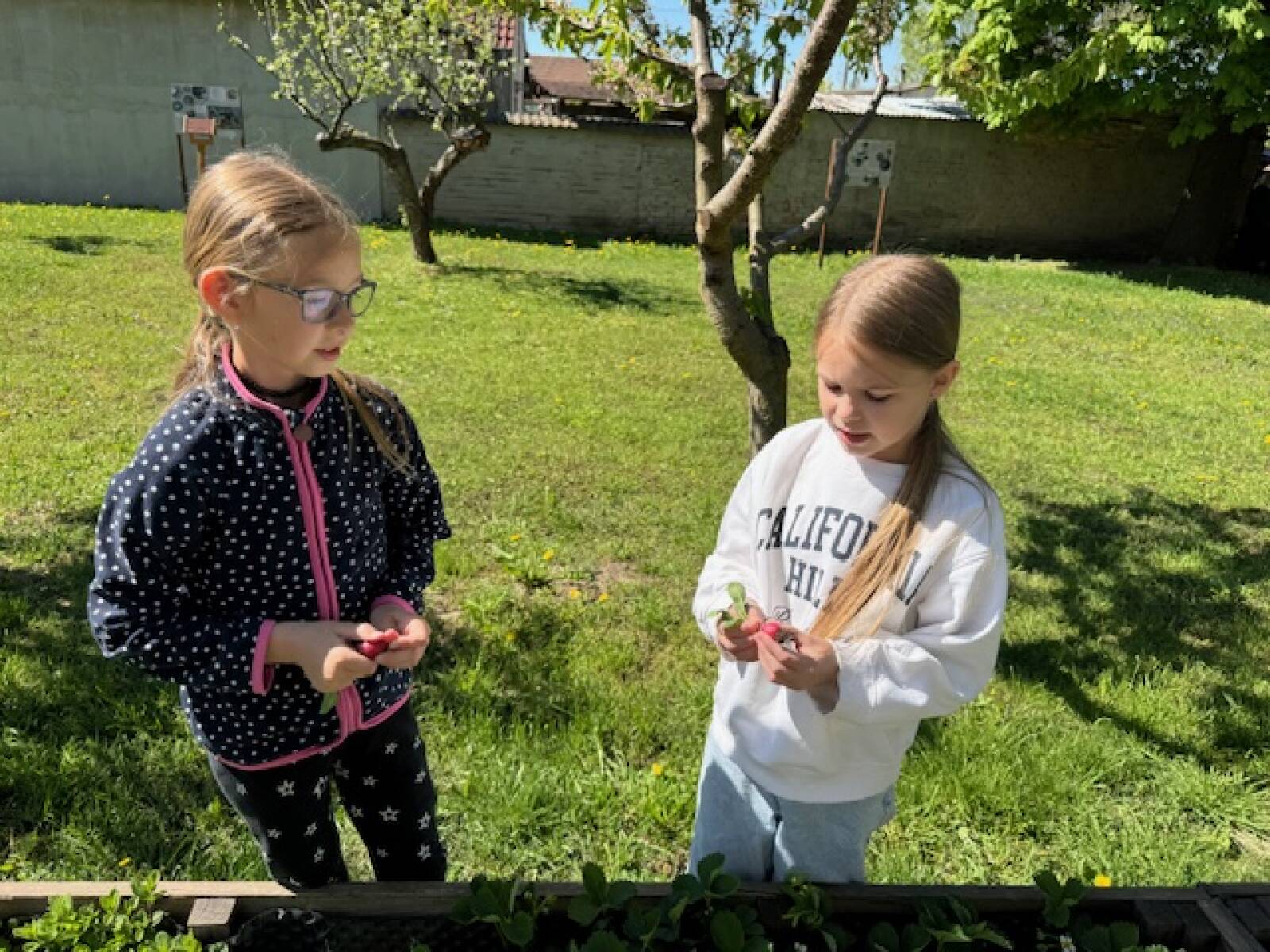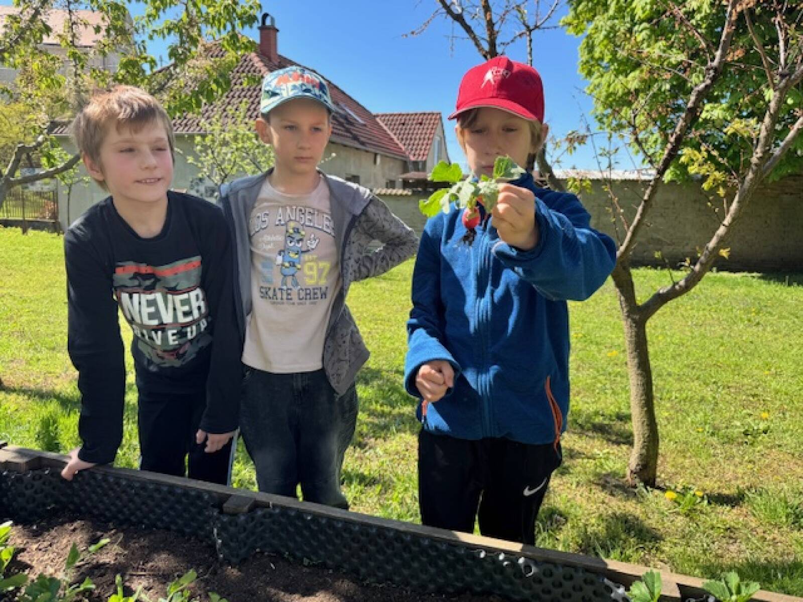 V hodinách environmentální výchovy jsme s dětmi třetí třídy sklidili první plody naší společné práce – čerstvé ředkvičky.