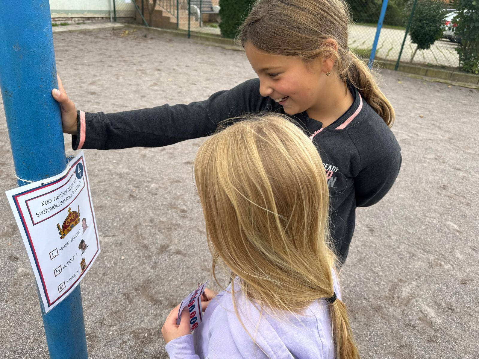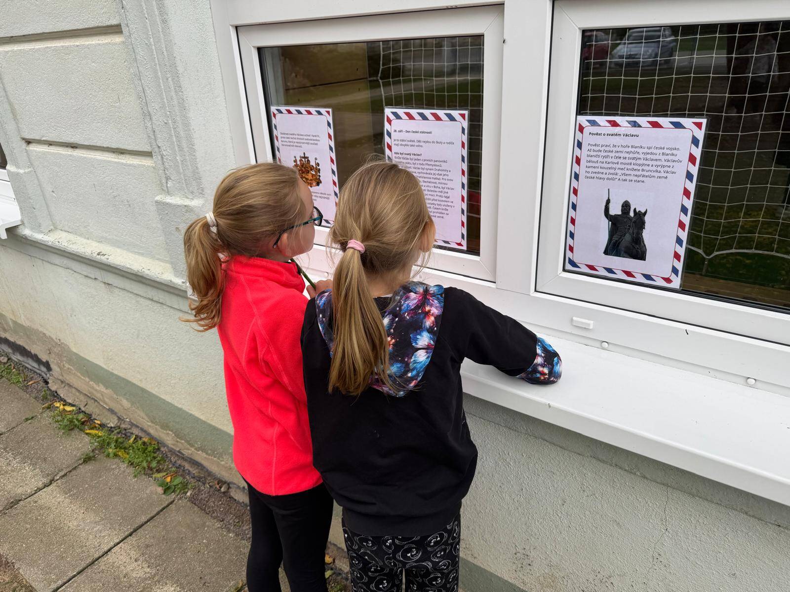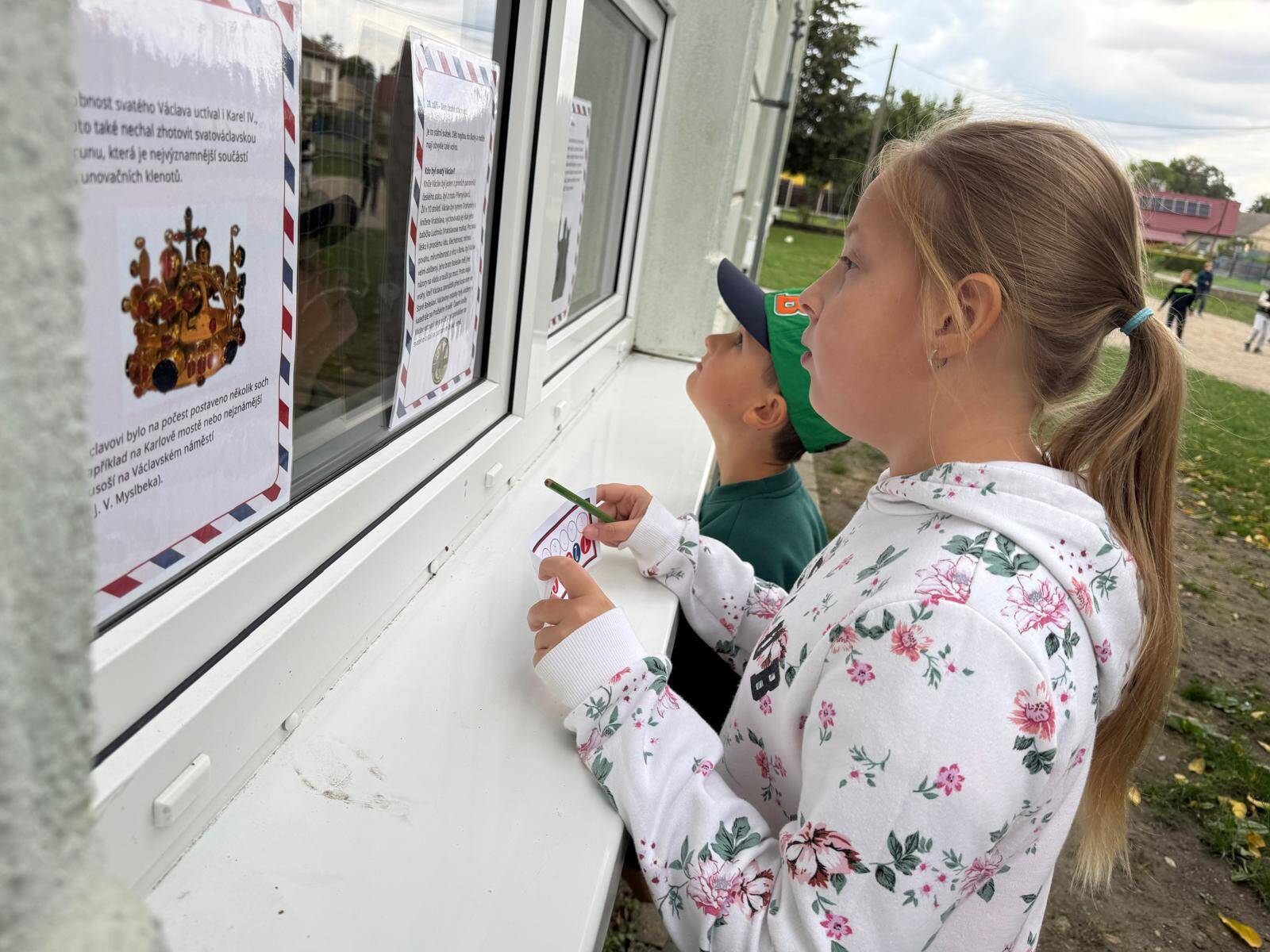 K připomenutí státního svátku sv. Václava čekala na děti v naší školní družině zábavně-naučná hra na školní zahradě, kde byly rozmístěny otázky ze života sv. Václava, patrona české země.