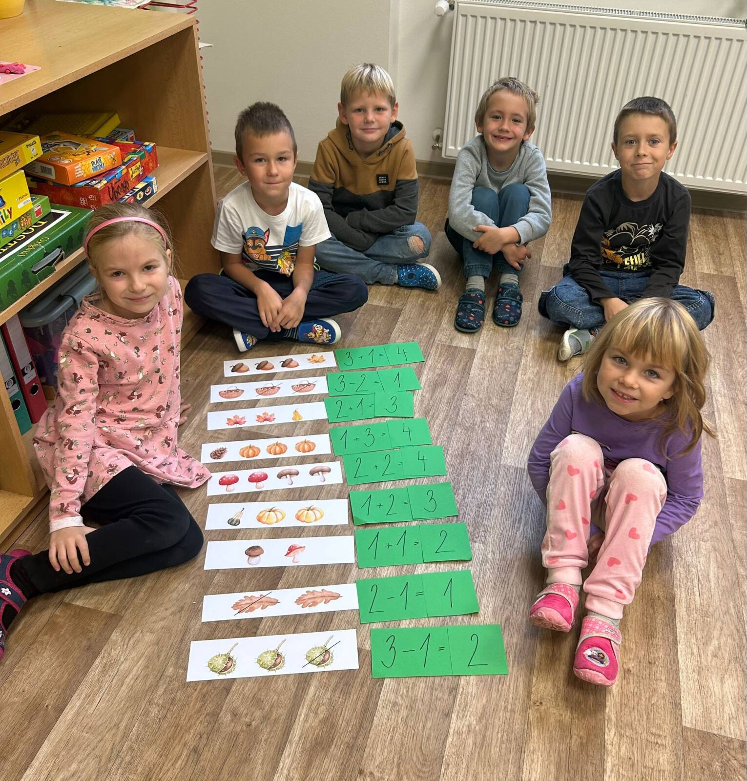 V matematice už zvládáme sčítat a odčítat do čtyř, v prvouce si povídáme o podzimní krajině a učíme se poznávat houby. Zjistili jsme, že mezi našimi prvňáčky je opravdu hodně zkušených houbařů!