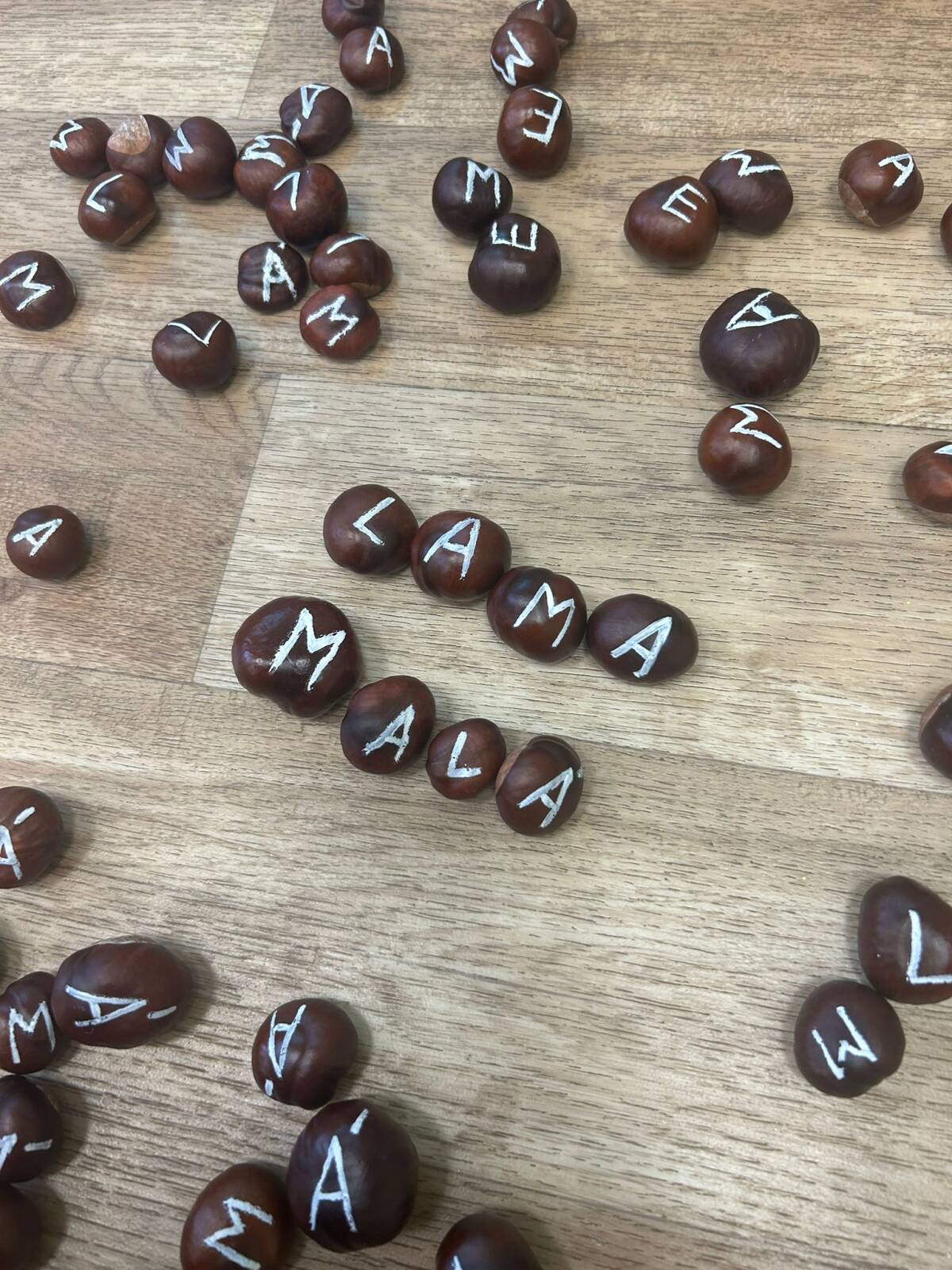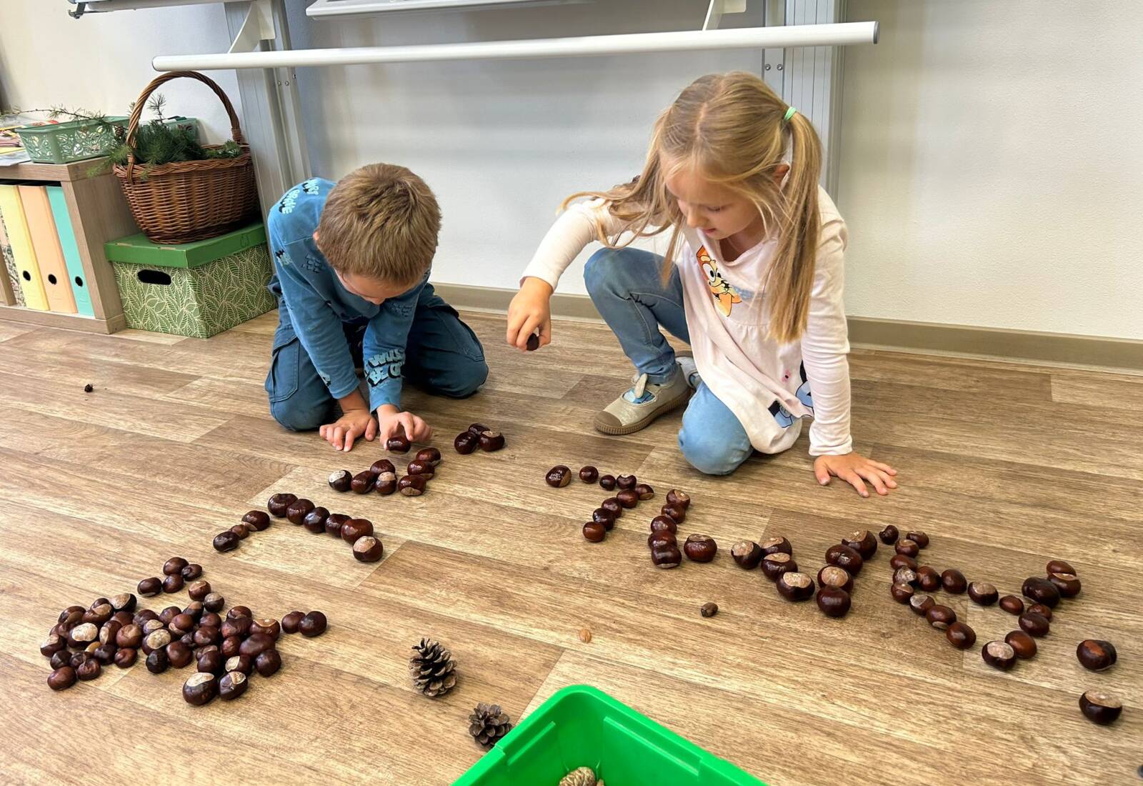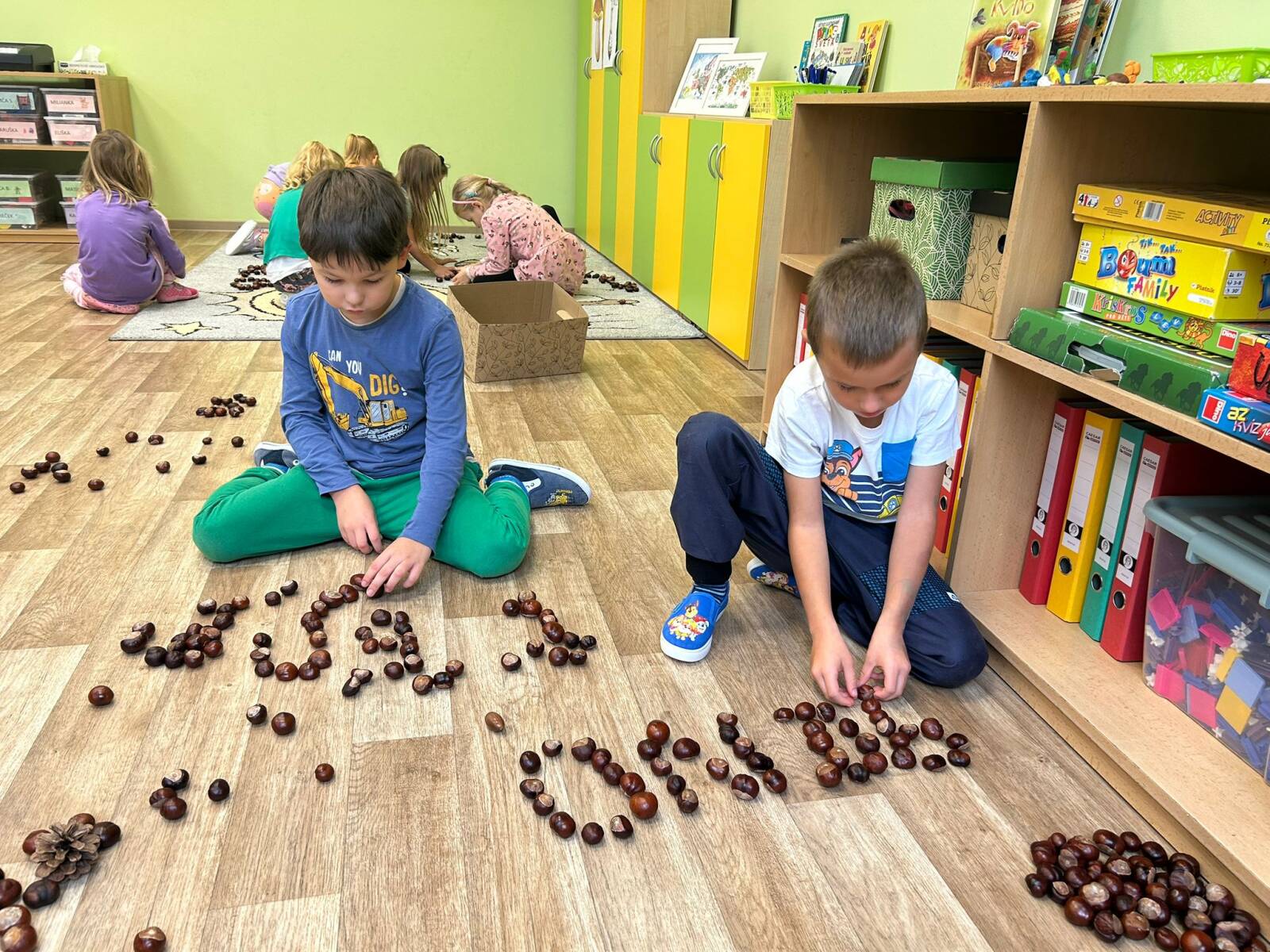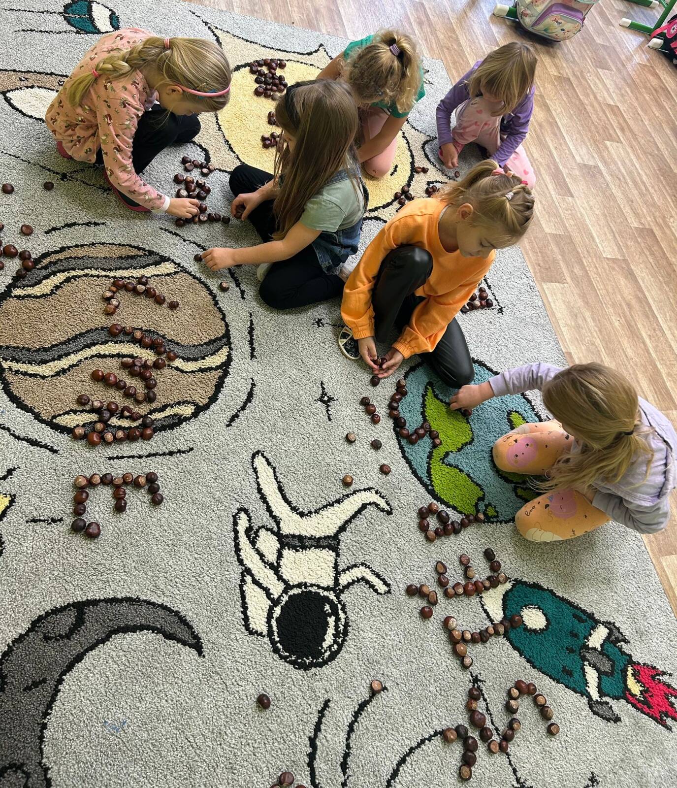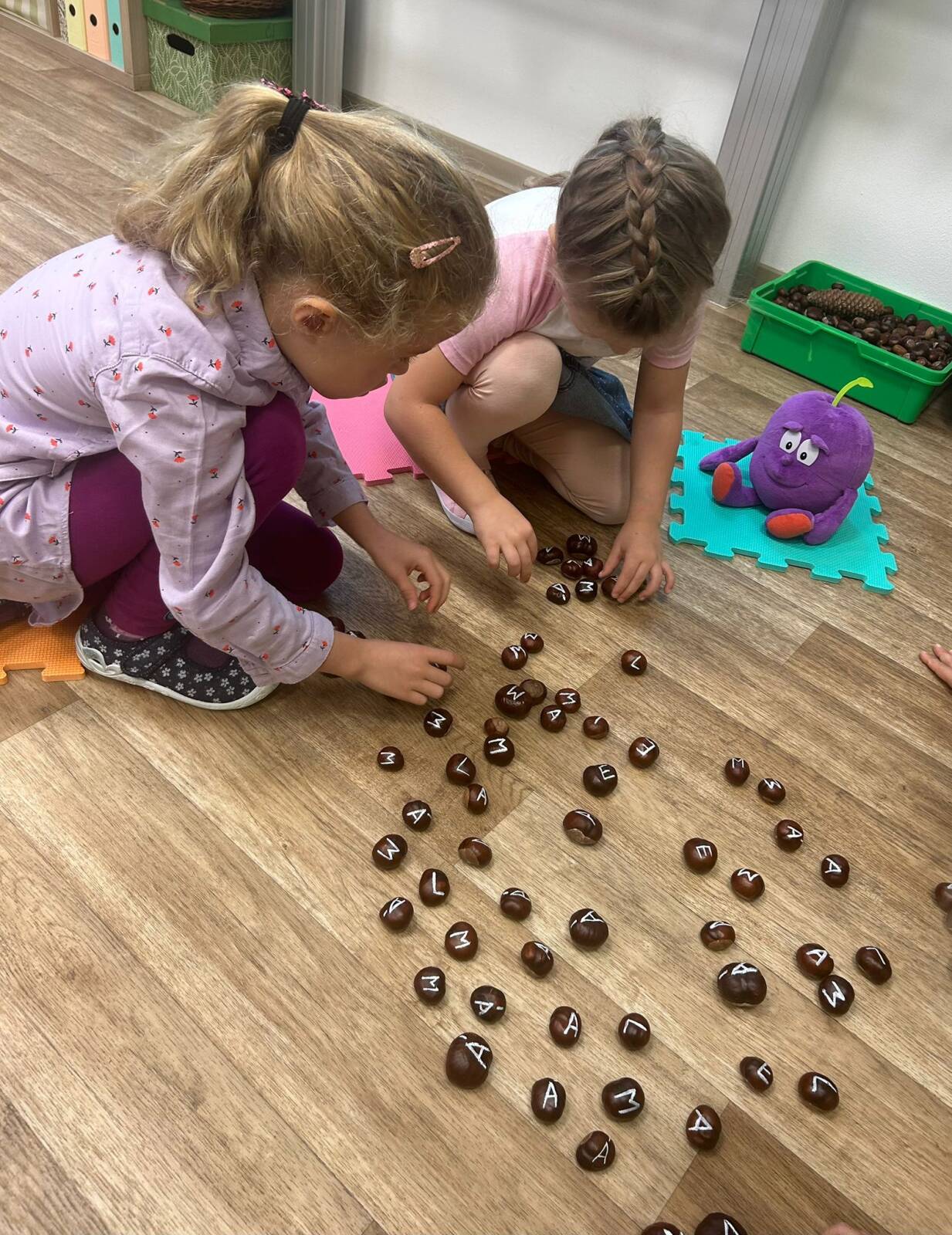 Učení nám zpříjemňují kaštany, které si děti samy nasbíraly a přinesly do školy.