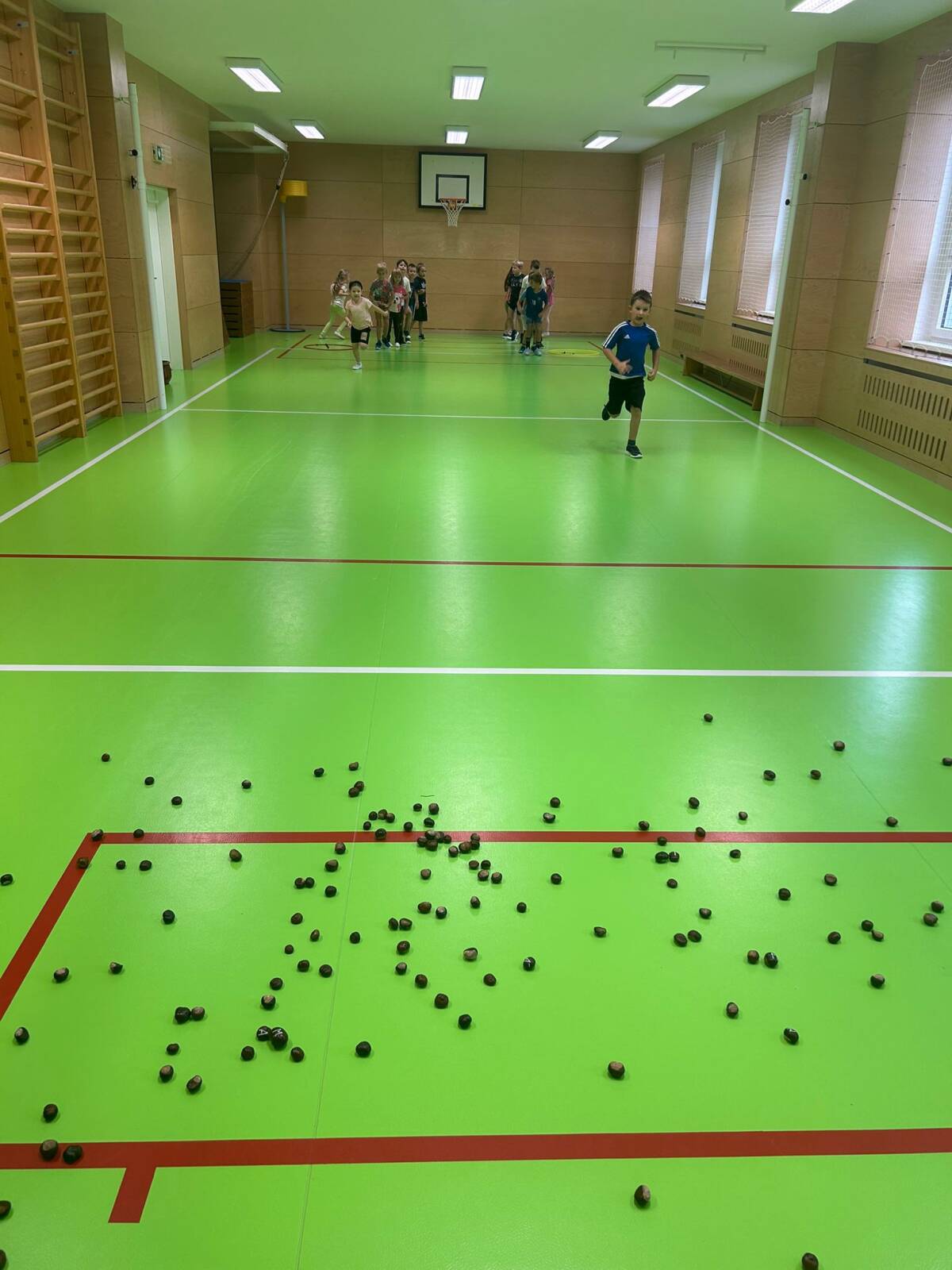 A protože kaštánků bylo opravdu hodně, vzali jsme si je i do hodiny tělesné výchovy, kde jsme je využili k různým pohybovým hrám.