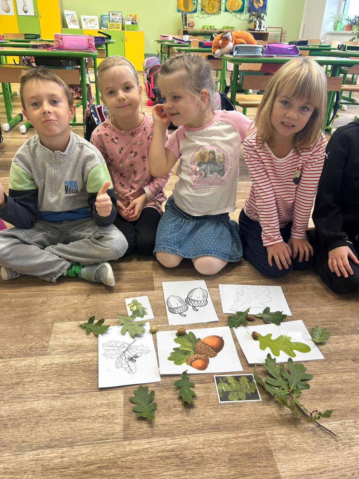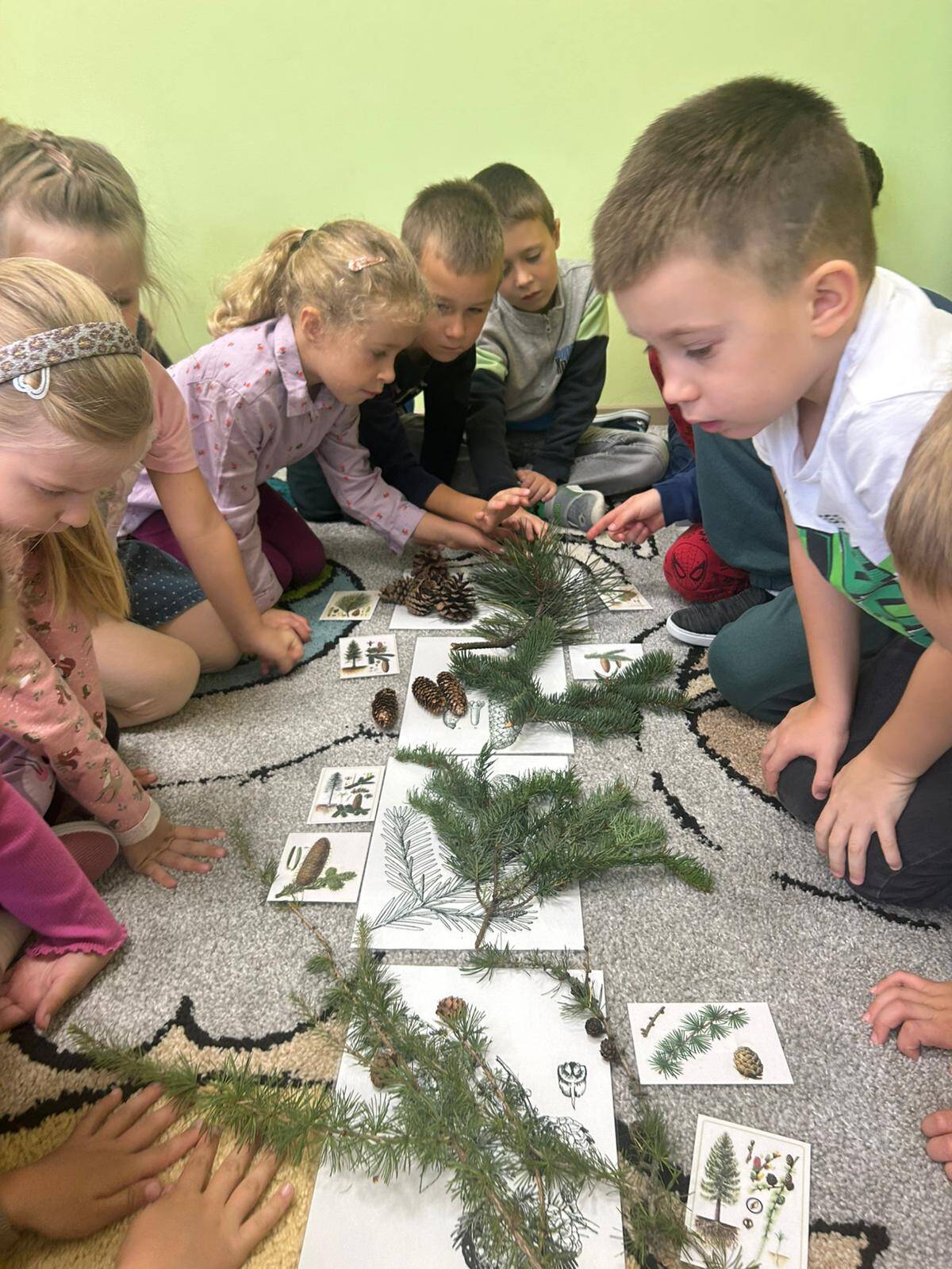 Prvňáčci se v hodinách prvouky seznámili s vybranými druhy listnatých a jehličnatých stromů.