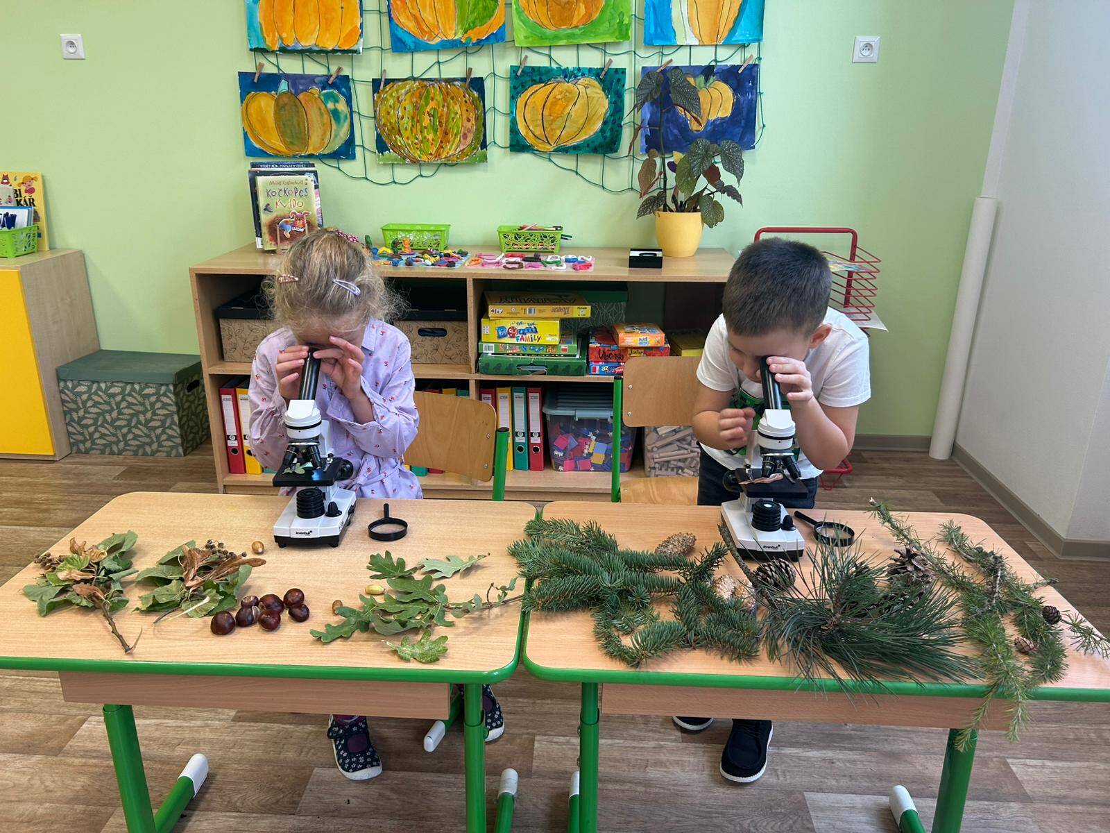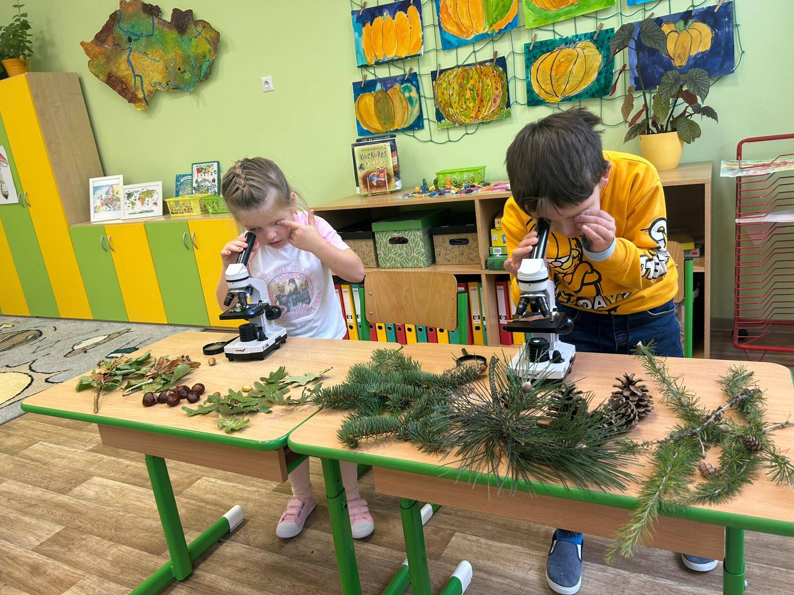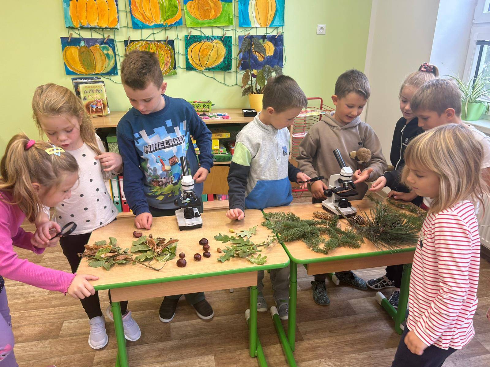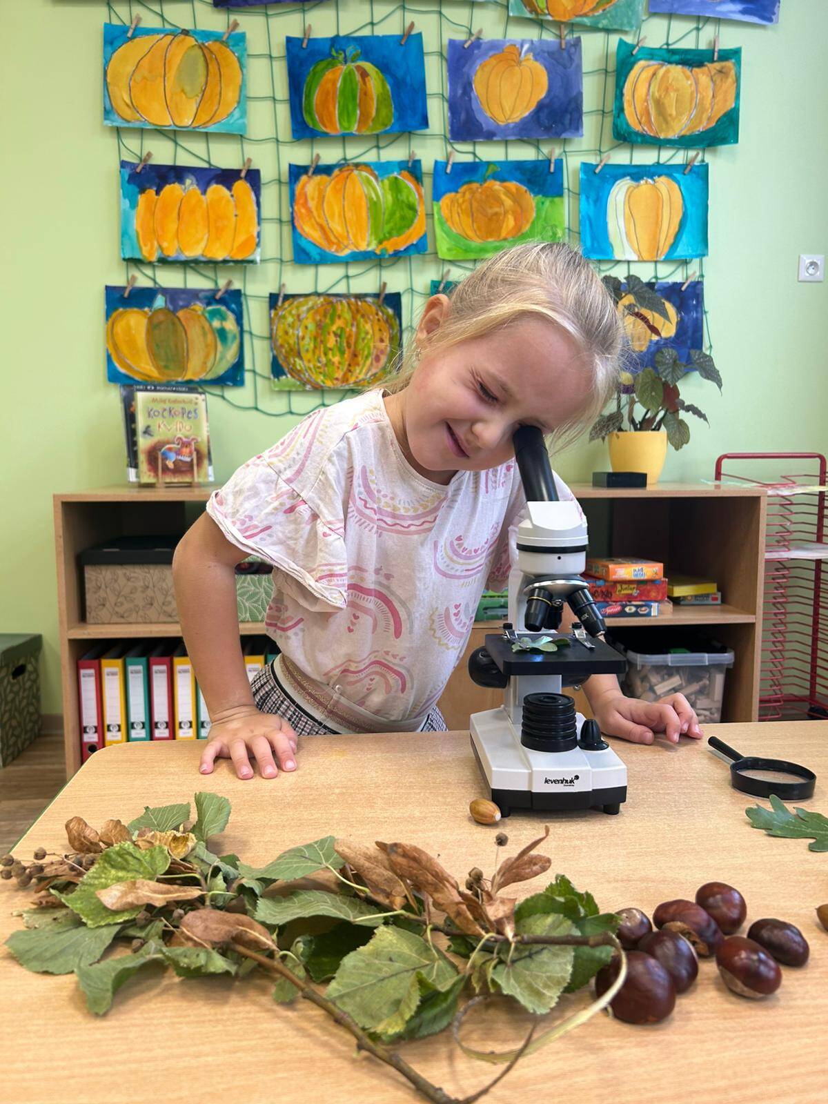 Velkým zážitkem pro všechny děti byla práce s mikroskopem. Pod mikroskopem objevily, jak listy vypadají zblízka – viděly jemné žilky i drobné struktury, které pouhým okem nezahlédneme.